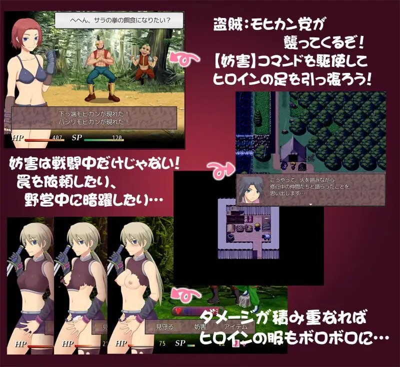 女主角们对主人公内心黑暗的欲望一无所知,为了完成护卫委托,她们以生命为赌注,带着主人公踏上了盗贼出没的街道……