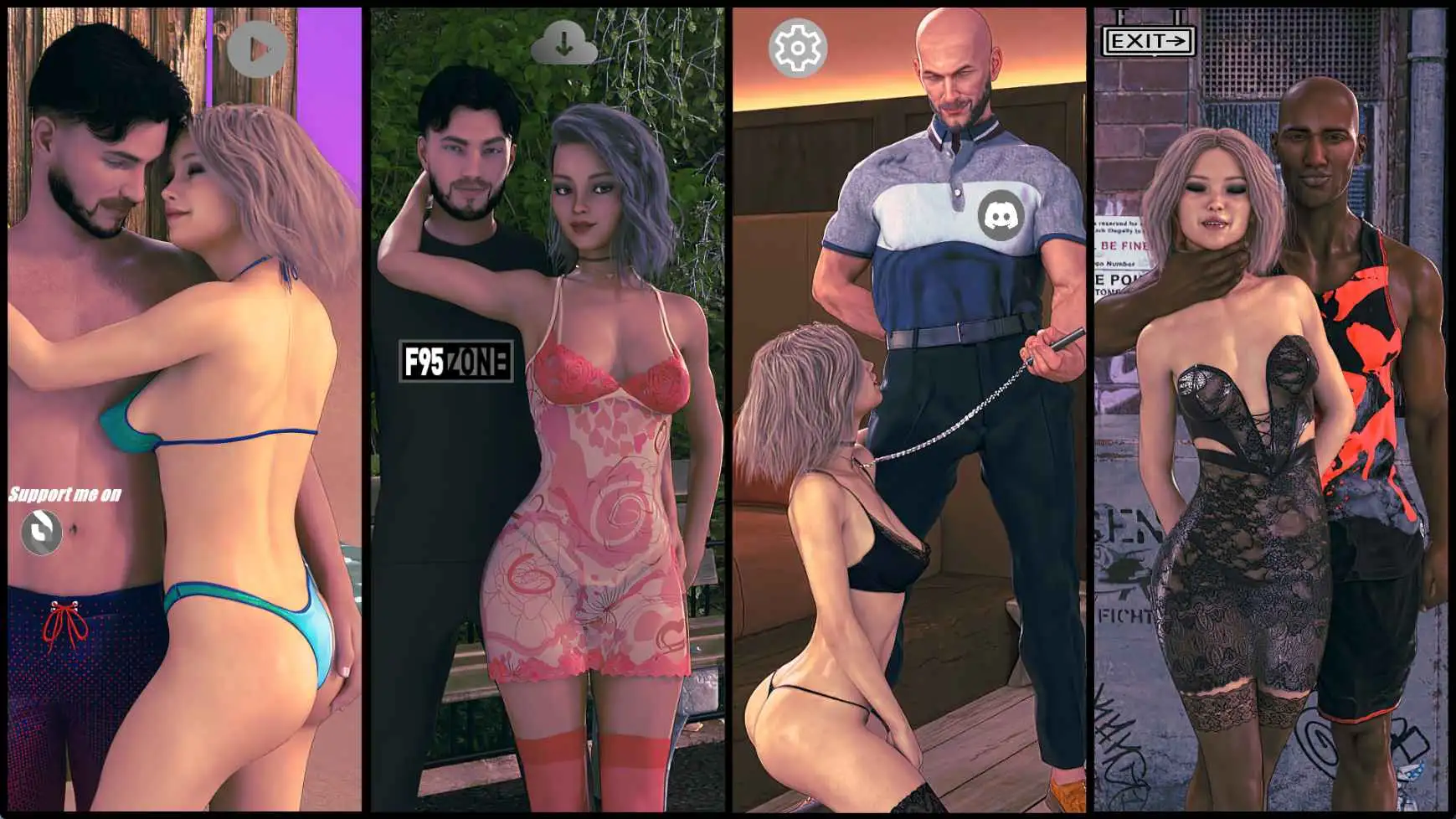 R24.为第三循环中的“爱情”和“欲望”路线新增事件(适用于未选择NTR路线的玩家)。早上可以选择和艾米一起去城里(当天可以翘班)。散步时可以和艾米一起去水疗中心(享受一些乐趣)。如何进入:1)选择“爱情”或“欲望”路线。内容与之前相同,只是对话有所不同(主角对女儿的态度一如既往)。2)NTR功能已禁用。3)水疗中心需要500金币。您可能会注意到渲染效果有一些变化。确实如此。我更改了地点并对角色进行了一些小的升级。变化并不明显。R23为迈克的路线(第三循环)新增事件。新增动画。如何开启新内容: